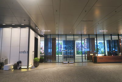 アンダーズ東京の正面玄関は、虎ノ門ヒルズの1階に位置する場所にあります。